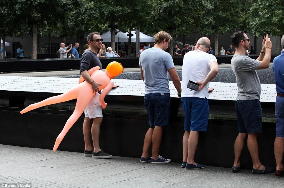 A group of British dudes thought it was a brilliant idea to bring a blow up sex doll to the 9/11 memorial. Like a bunch of wankers.