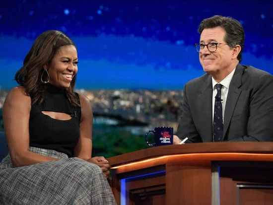 Michelle Obama Killed It With Her Barack Impression on 'Colbert'